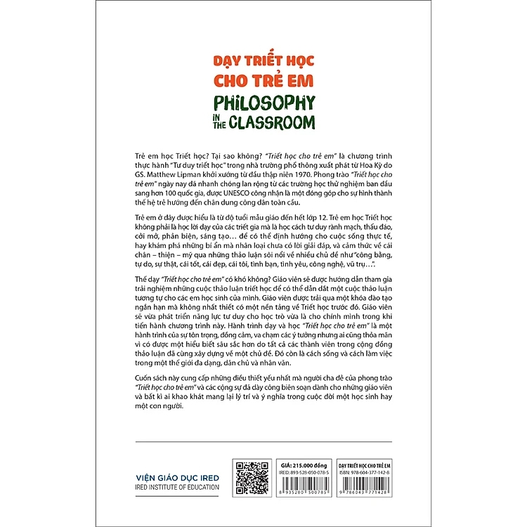 Cuốn sách này cung cấp những điều thiết yếu nhất mà “cha đẻ” của phong trào “Triết học cho trẻ em” và các cộng sự đã dày công biên soạn dành cho những giáo viên và bất kì ai khao khát mang lại lý trí và ý nghĩa trong cuộc đời một học sinh hay một con người.