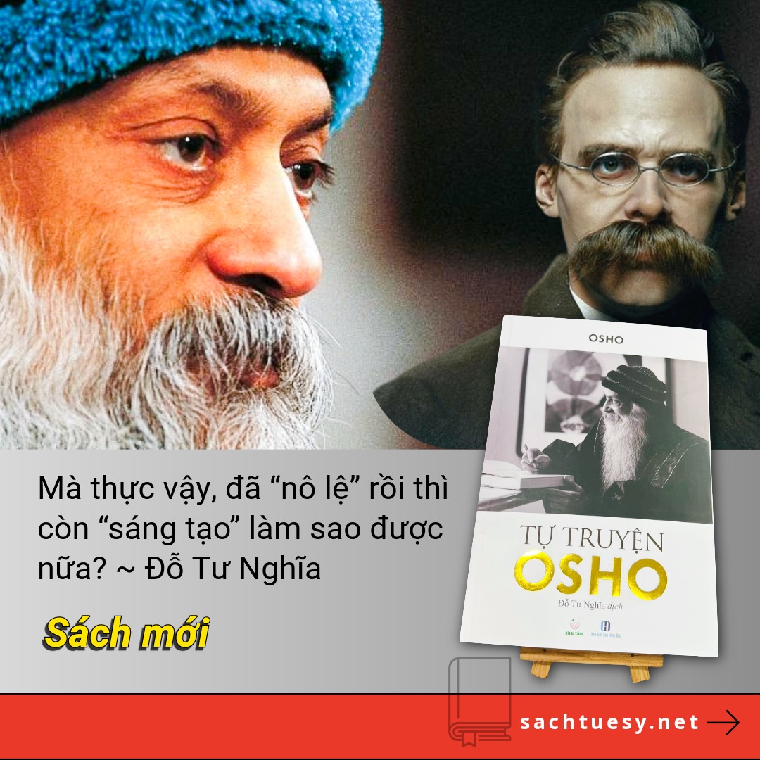 Đọc Osho, đối với tôi, về một phương diện nào đó, cũng gần giống như đọc Nietzsche - mặc dù Osho là một Đạo sư chứng ngộ, còn Nieztsche thì “chỉ là” một triết gia mà đã đi vào cơn điên loạn suốt 10 năm cuối của đời mình. Nhưng họ giống nhau ở chỗ: cả hai đều kích thích tâm trí của ta, bắt ta phải đặt lại nhiều vấn đề tưởng chừng như “nhất thành bất biến”. Cả hai đều có sự “nổi loạn” của một con người sáng tạo, không chấp nhận bất cứ sự nô lệ tinh thần nào, bất luận nó đến từ đâu. Mà thực vậy, đã “nô lệ” rồi thì còn “sáng tạo” làm sao được nữa?